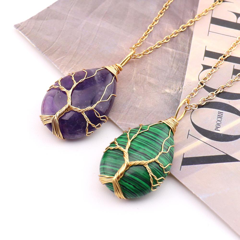 Trending Agate Water Drop Tree of Life Pendant Necklace with Wire Wrap