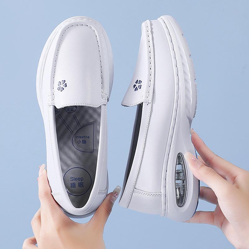 Nurse Shoes with Soft Soles, Breathable and Comfortable, No Foot Odor, Hollow Non-slip Flat Soles, Large Air Cushions, Medical White Shoes