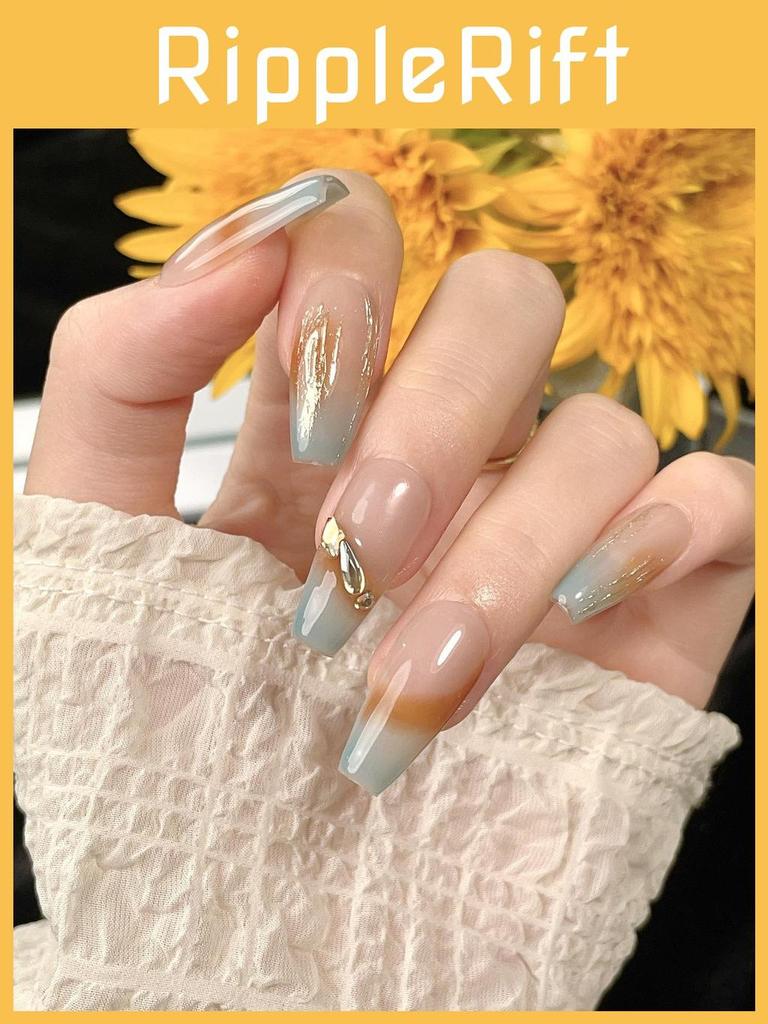 Forest Mist Color Handmade Nail Stickers With Ice Transparent Design Long Style Removable