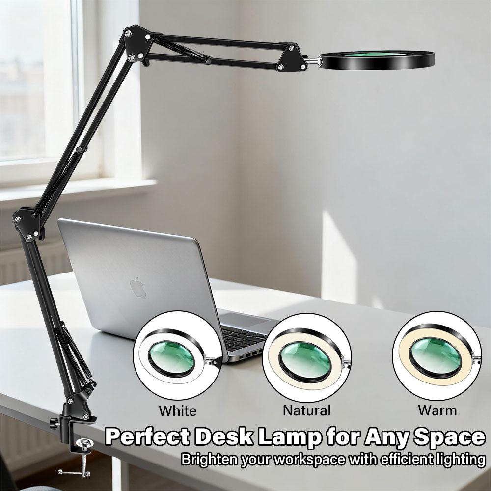USB Plug In 10 X Magnifier Table Lamp, Glass Lens, 3 Rocker Arms, Dimmable LED Magnifier Reading Craft Hobby Close Work