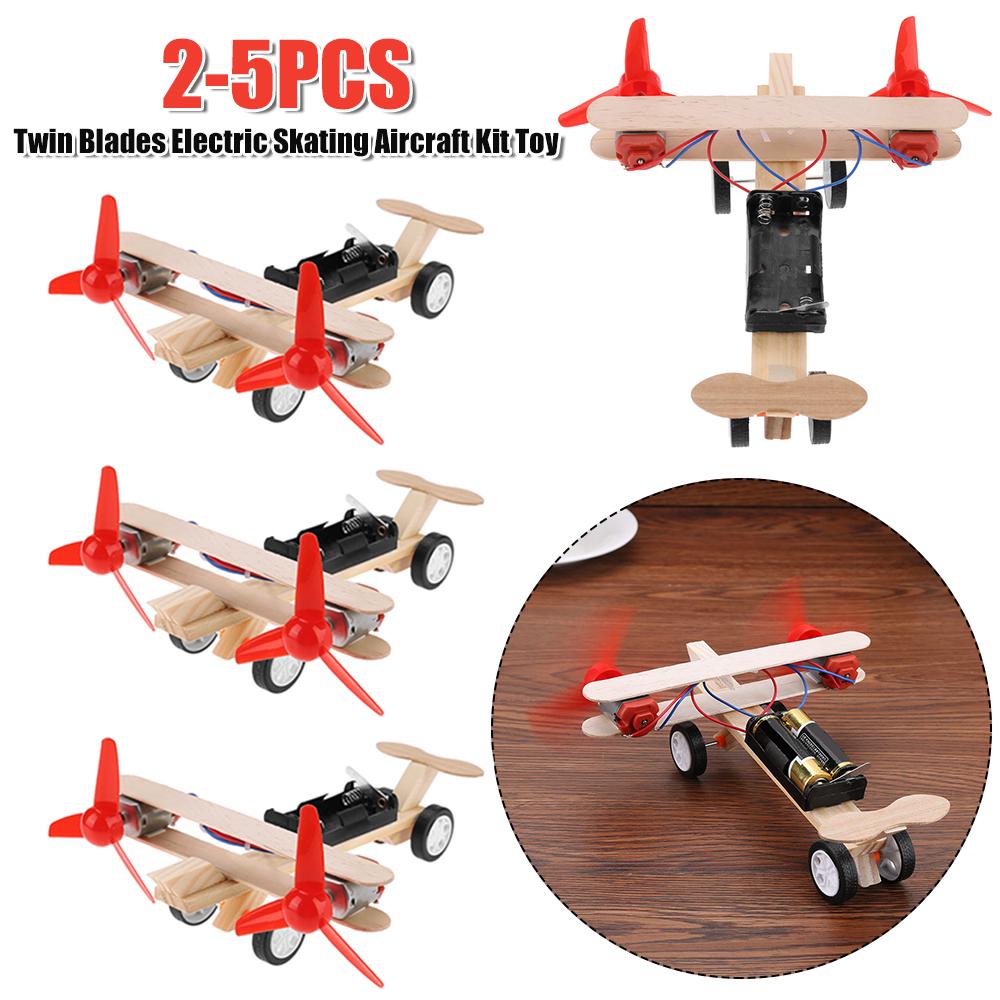 Twin Blades Assembled Aircraft Set Toy Battery Powered DIY Aircraft Model Toy Eco-Friendly Wooden for Intellectual Development