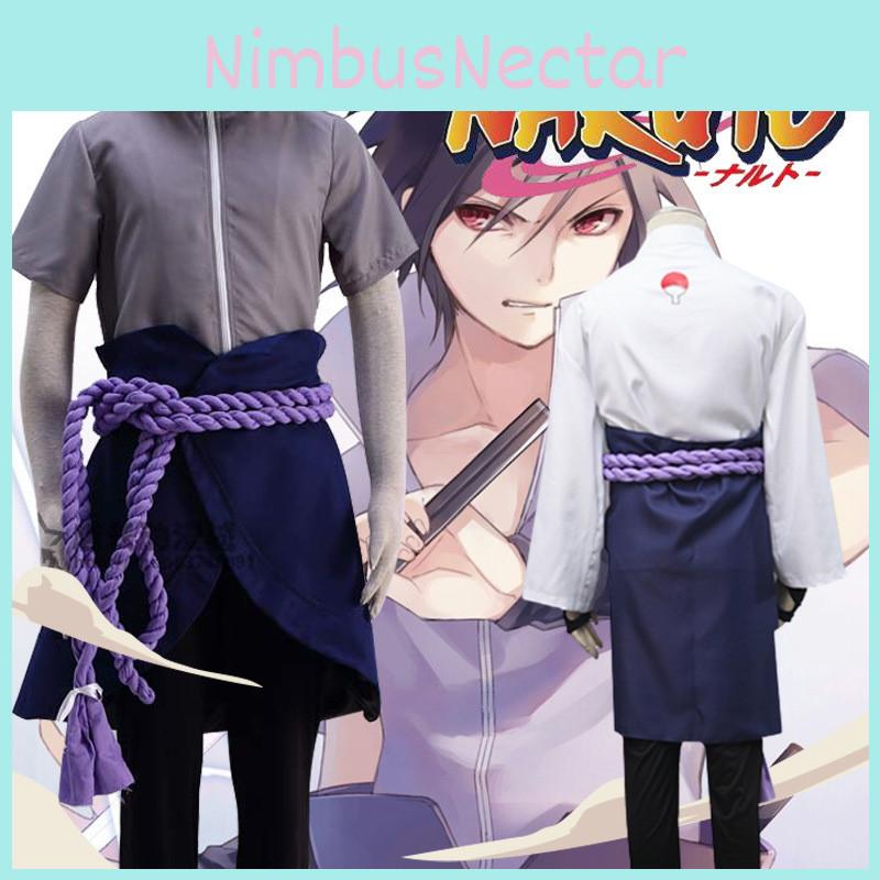 Naruto Uchiha Sasuke Full Outfit White Cosplay Costume With Zipper For Role Play Gift