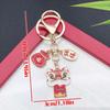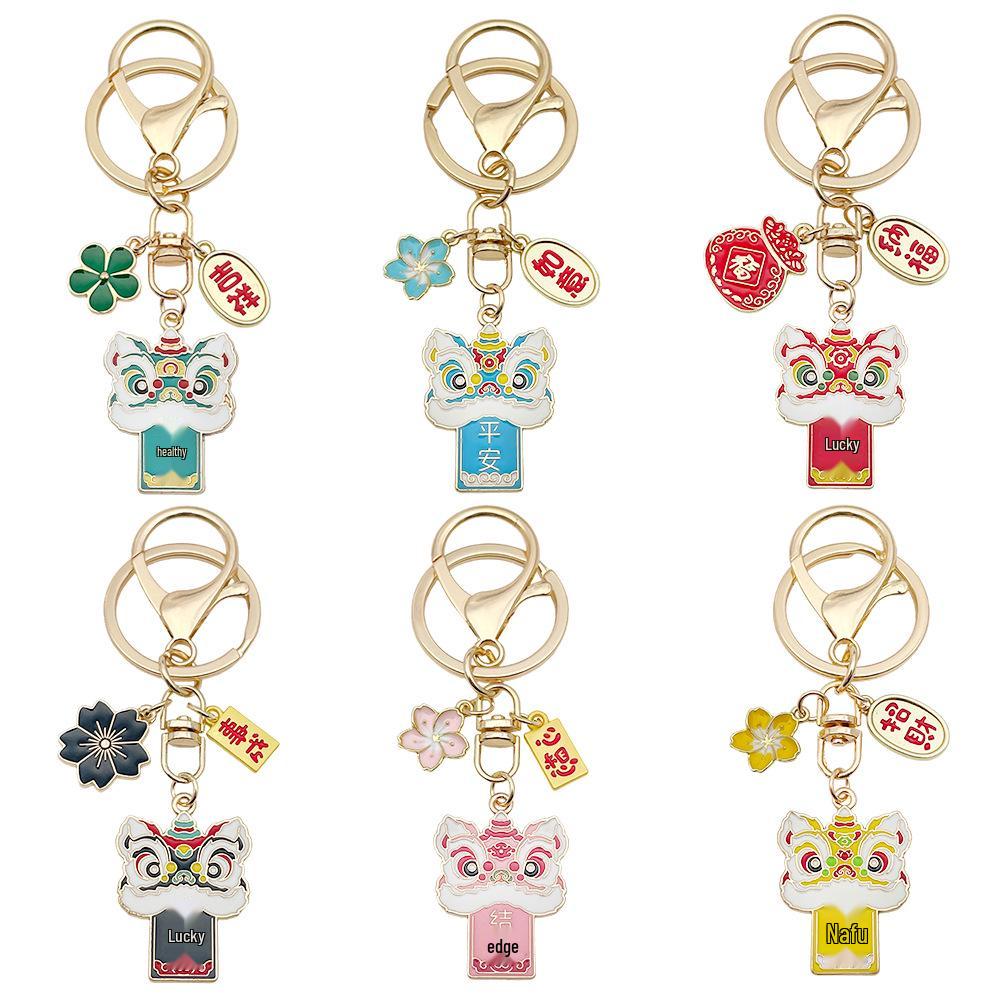 Six-Color Oil Drip Cartoon Chinese Style Keychain: Four-Leaf Clover, Cherry Blossom, Lion Pendant for Backpack
