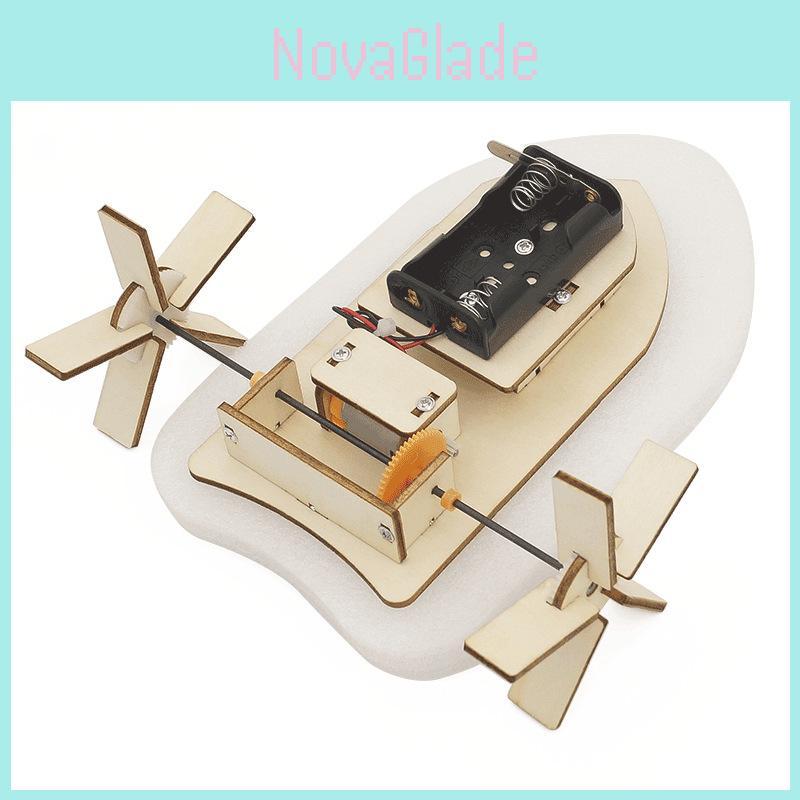 Children's Diy Wooden Science Kit For Building Technology Handmade Steamboat With Light Wheel