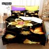 Comforter Golden Butterfly And Floral Bedding Set Queen Print Black For Kids Girls Boys Adults Bedroom Decor