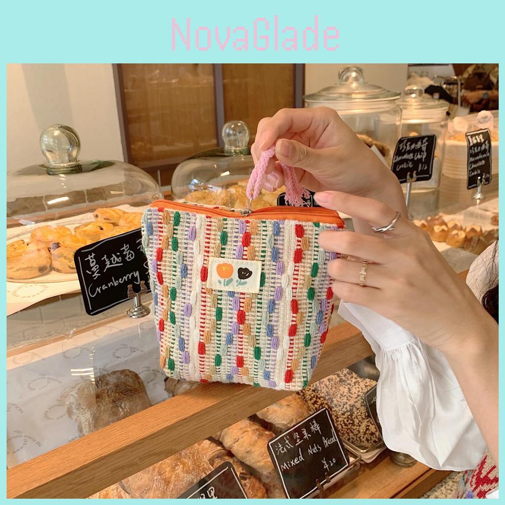 Colorful Rainbow Mini Canvas Cosmetic Bag Small Bag Coin Purse Student Pencil Case Wrist Bag