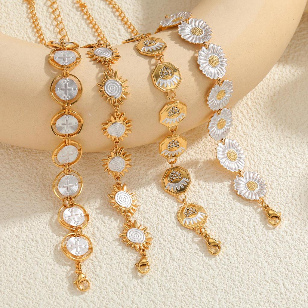 Newins 18k Gold Stainless Steel Geometric Daisy Bracelet - Elegant Niche Design for Women