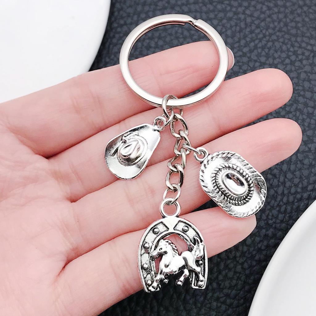 Antique Silver Horse Hoof Cowboy Hat Keychain - Creative Zinc Alloy Backpack Ornament & Gift Pendant