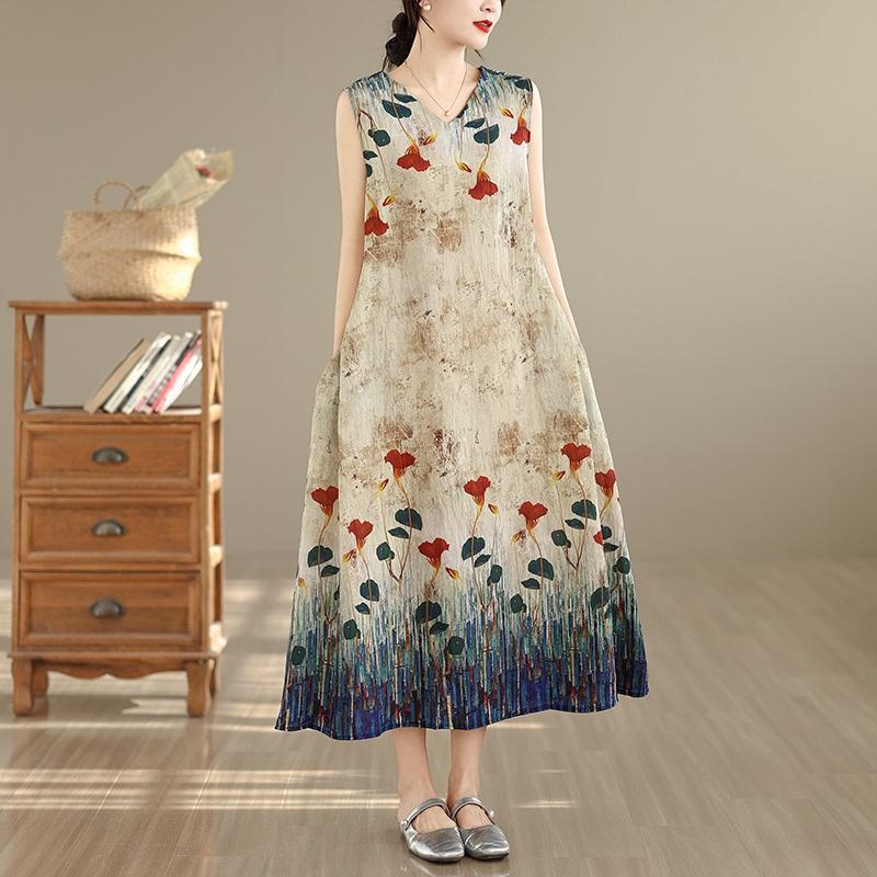 Sleeveless Plus Size Cotton Vintage Floral New In Dresses for Women Casual Loose Long Summer Dress