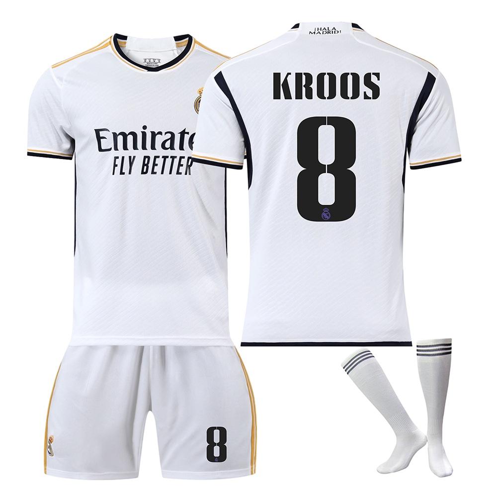Introducing the 2324 Real Madrid Football Jersey - a must-have for all soccer enthusiasts! Crafted with top-quality polyester fiber (polyester), this jersey guarantees comfort and durability on and off the field.Whether you're playing or cheering from the stands, this jersey will keep you feeling cool and confident.