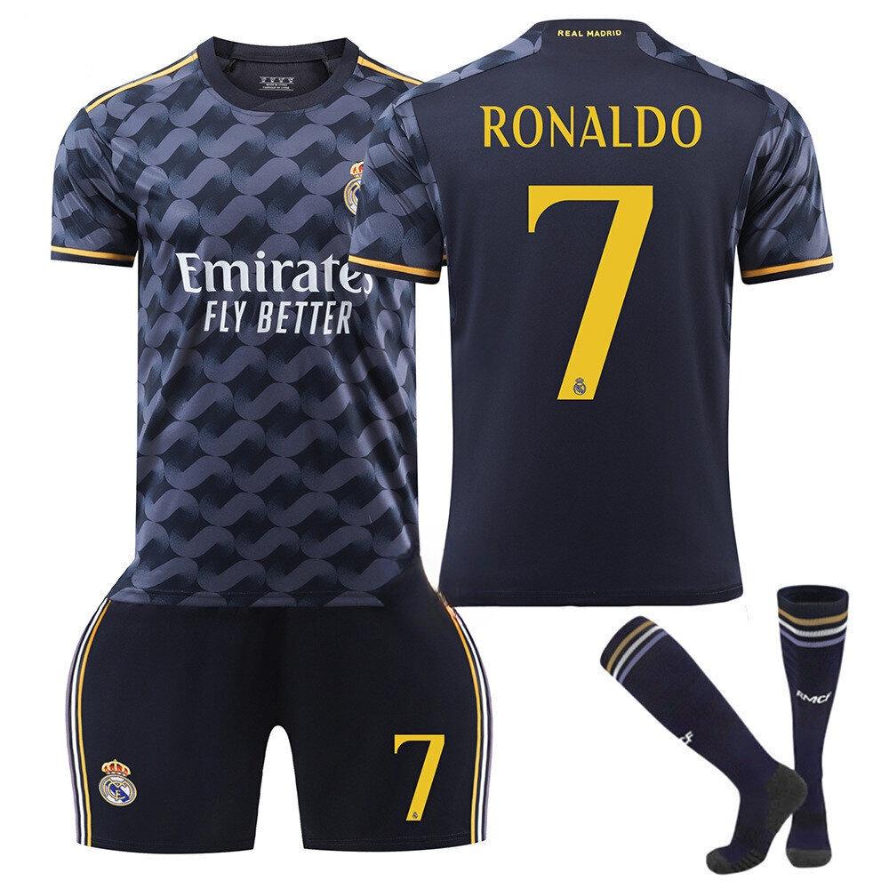 2324 Real Madrid Blue Away Jersey 10 Modric 7 Vincius 5 Varane Football Kit