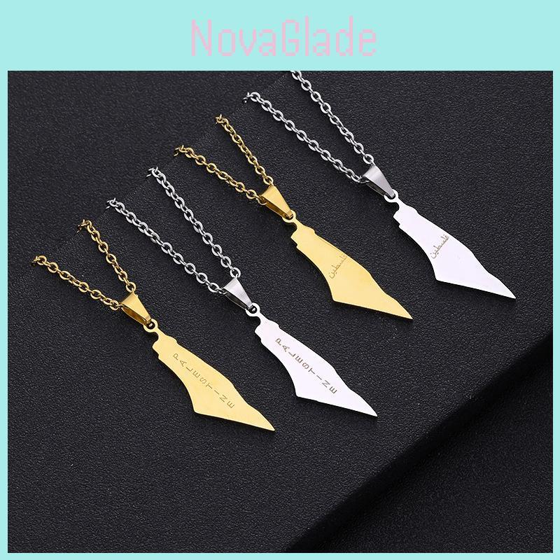 Stylish Geometric Stainless Steel Map Pendant Necklace For Women Israel And Palestine