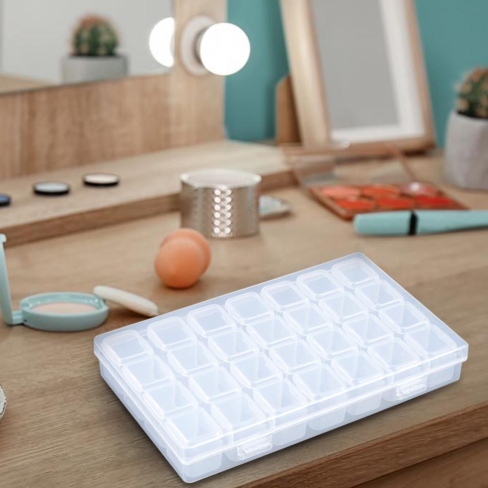 28 Separate Grids Beads Storage Case Transparent Nail Decoraations Storage Box Removable Washable Portable Plastic Nail Art Tool