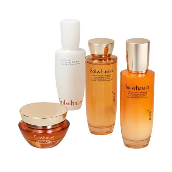Sulwhasoo Concentrated Ginseng Rejuvenating Cream Rich Special Set is a Korean luxury 4-step anti-aging skincare set designed to help support skin firmness, help improve the appearance of wrinkles, and deliver a complete daily ginseng-powered skin routine. The Concentrated Ginseng Rejuvenating Cream Rich, formulated with Hydrolyzed Ginseng Saponins (Ginsenomics), Retinol, and a multi-peptide complex, helps support skin density and a more lifted appearance. The Concentrated Ginseng Rejuvenating Serum, featuring a triple capsule delivery system with Niacinamide and Hyaluronic Acid, helps support visible firming and skin resilience. The First Care Activating Serum with Jaum-dan® herbal complex helps strengthen the skin barrier and prepare skin for optimal absorption, while the Concentrated Ginseng Rejuvenating Cleansing Foam with Ginseng Amino Complex gently purifies while supporting skin hydration. Suitable for all skin types, this set provides a complete daily Korean anti-aging ritual.