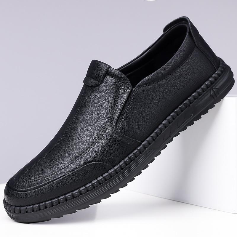 Spring New Shoes for Men Leather Casual Shoes Comfortable Slip-On Loafers Round Toe Flat Leisure Shoes
