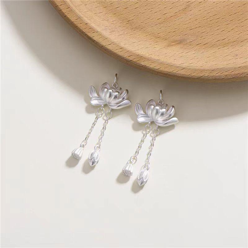Sterling Silver Lotus Tassel Pendant - Chinese Style DIY Braided Rope Necklace Ornament