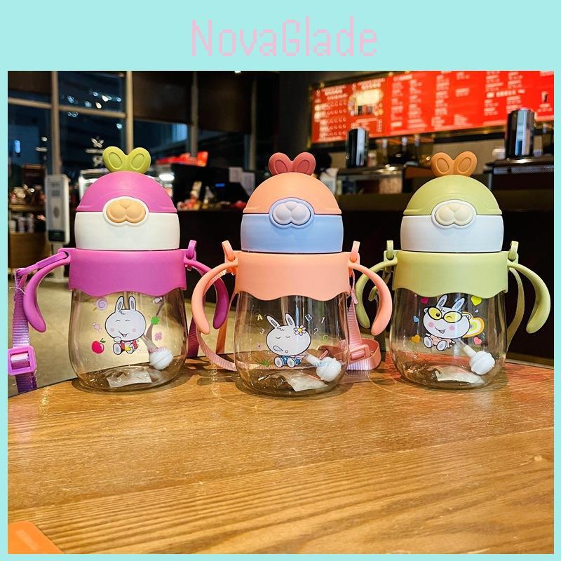 New Children's Straw Cup With Handle And Shoulder Strap Pc Material 450ml Purple/pink/green
