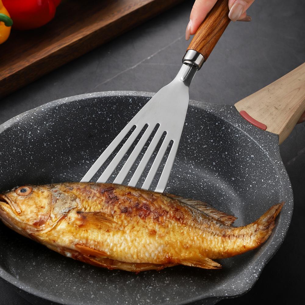 304 Stainless Steel Spatula WoodenHandle Non-Slip Kitchen Turner for Cookin Frying Grilling - Professional Restaurant & Home Use