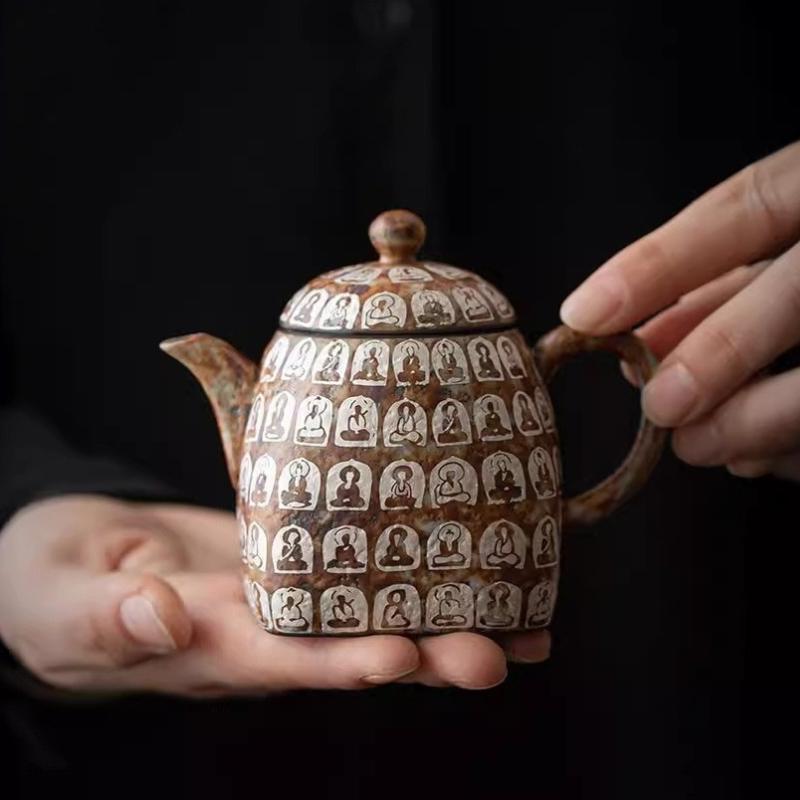 Dunhuang Ten Thousand Buddhas Silver Gilded Ceramic Gongfu Tea Set Chinese Traditional Yixing Teapot Gift Home Decor