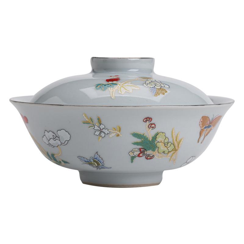 Retro Moon Butterfly Ceramic Tea Tureen Boutique Japanese Tea Bowl Tea Maker Cover Bowl Household Kung Fu Tea Set