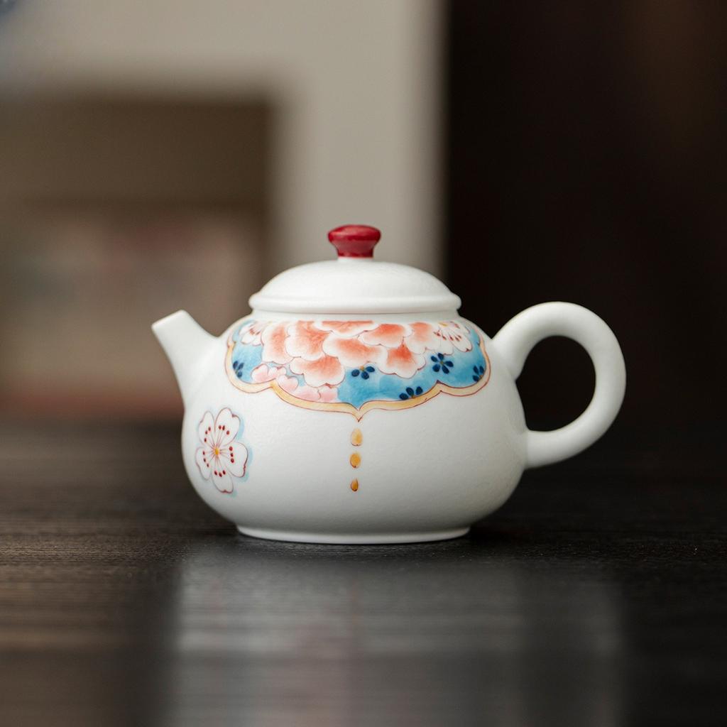 Hand Painted Ceramic Teapot White Porcelain Peony Design Chinese Kungfu Tea Set for Home Office Decor Gift Tea Lover