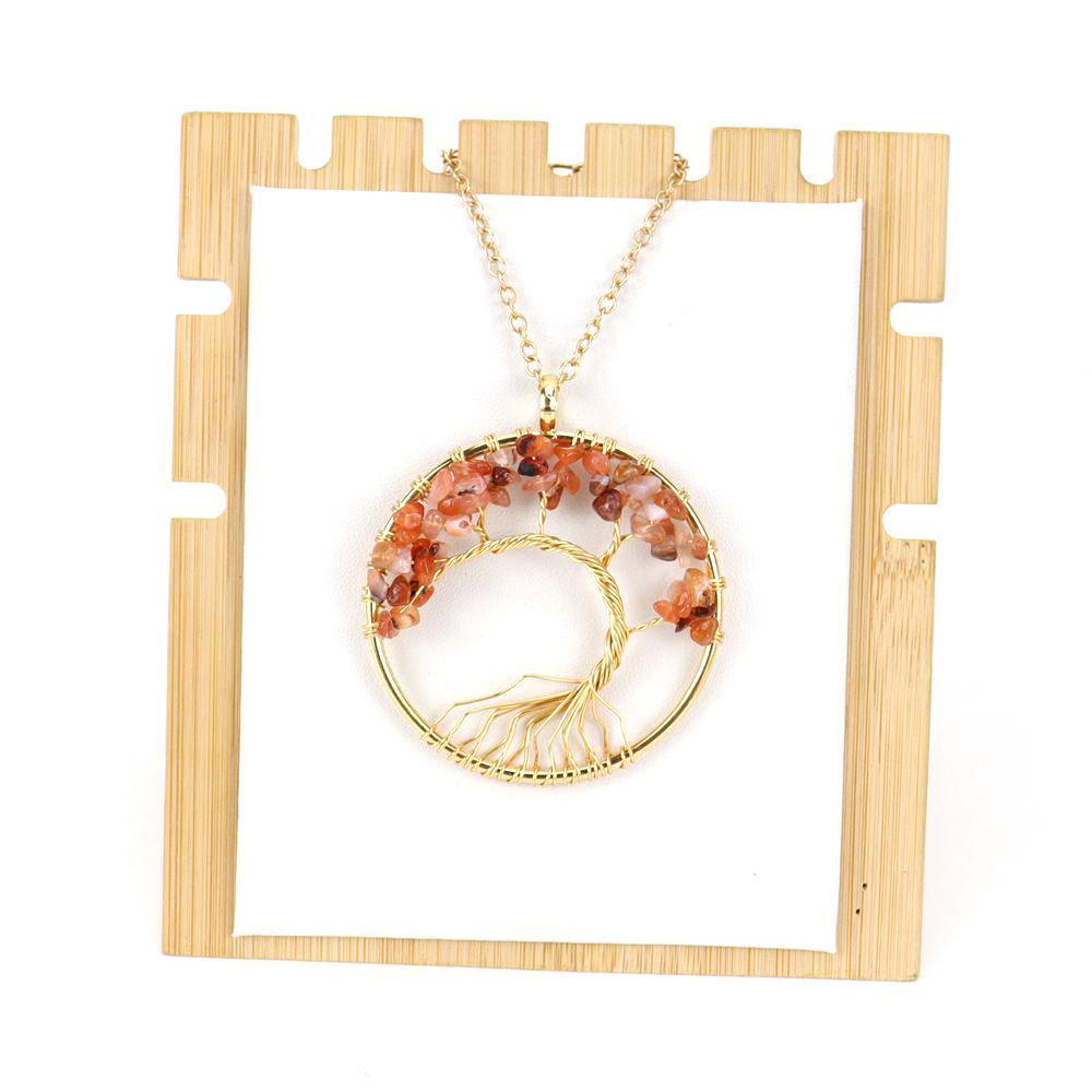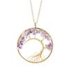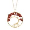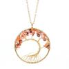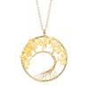 Gold Wire-Wrapped Tree of Life Necklace with Natural Crystal Crushed Stone