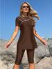 The 2026 Women's Short Sleeve Knee-Length Split Tankini Swimsuit is designed for stylish, active women seeking comfort and elegance during their beach or poolside adventures. This swimsuit features a solid pattern and is crafted from high-quality polyester, ensuring durability and a comfortable fit. The short sleeves and knee-length design offer a modest yet fashionable look, while the split detail adds a touch of flair. Perfect for any summer occasion, this tankini swimsuit provides both functionality and chic style.