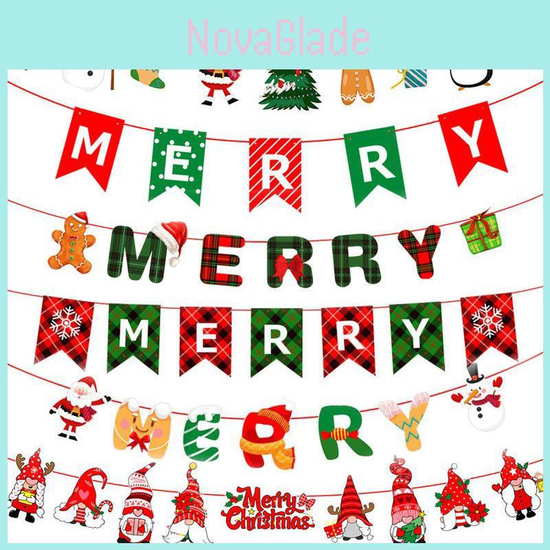 Colorful Christmas Banner Flag Decor Featuring Santa And Elk For Festive Home Ornaments