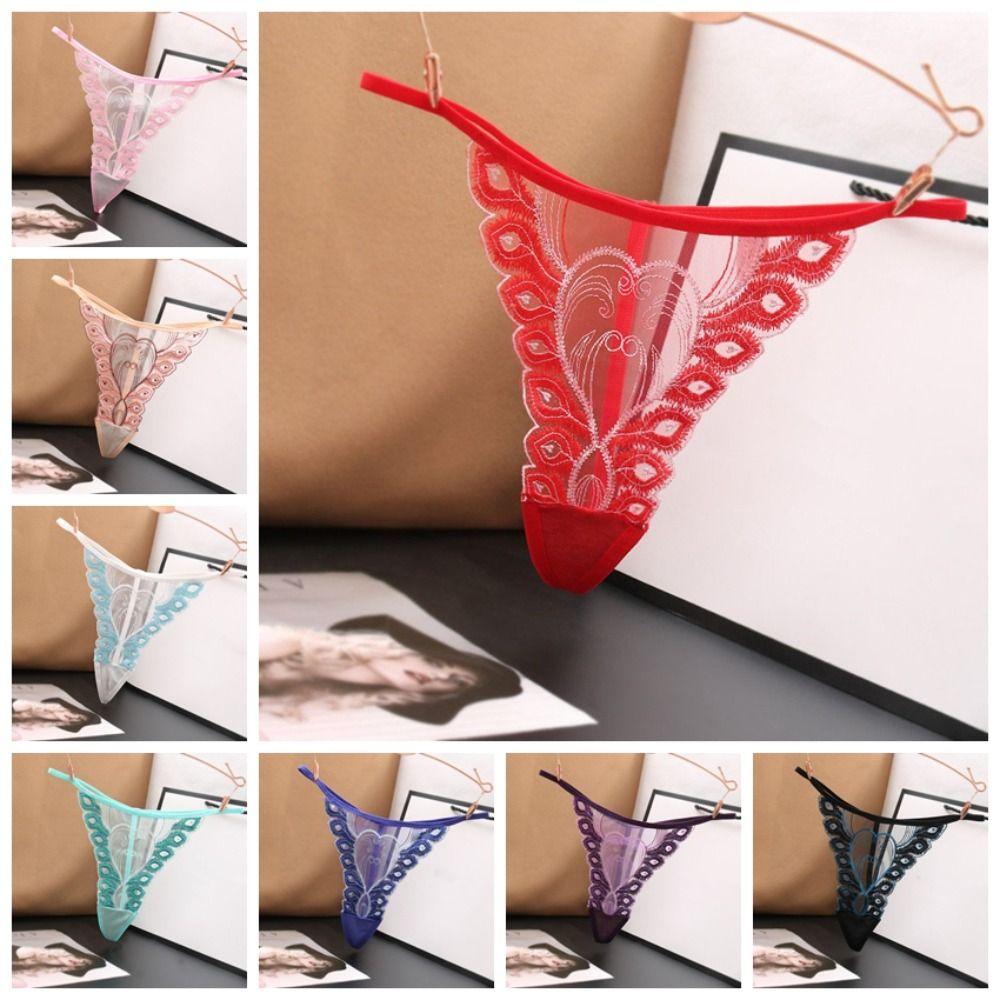 Cotton Crotch Lace Embroidered Panties Low Waist Transparent T-Pants Sexy Mesh Thongs Gift