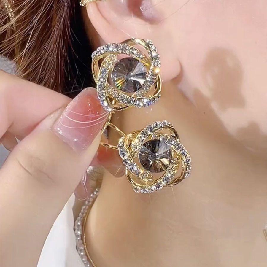 Elegant 2023 Gray Rhinestone Stud Earrings: Trendy High-End Fashion Jewelry for Women