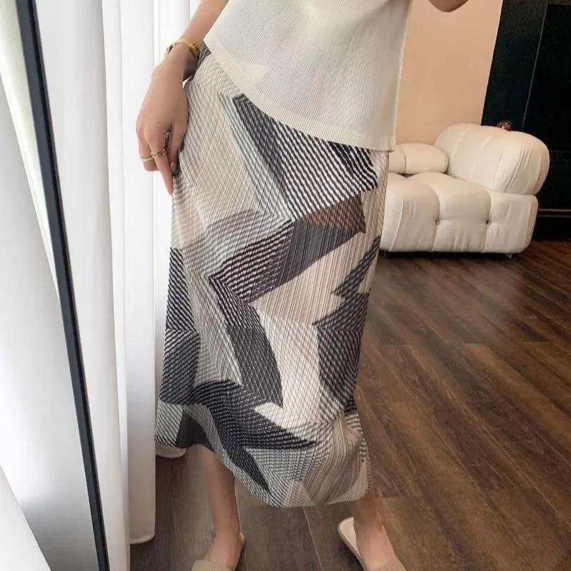 Women's Miyake Style Geometric Print Pleated Straight Skirt
