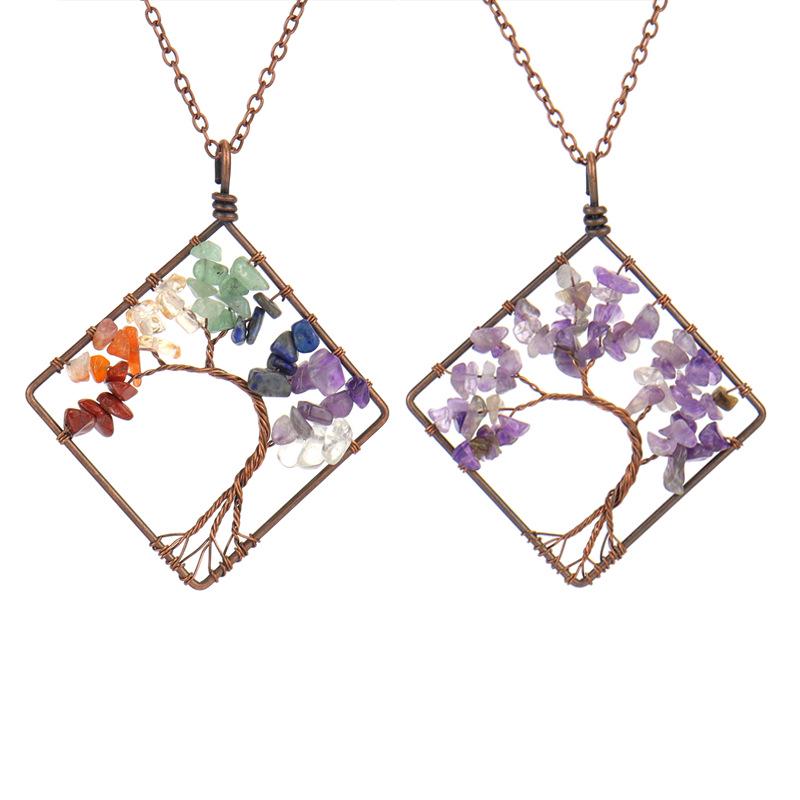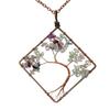 Handmade Vintage Tree of Life Necklace with Wire-Wrapped Natural Crushed Stone Crystal
