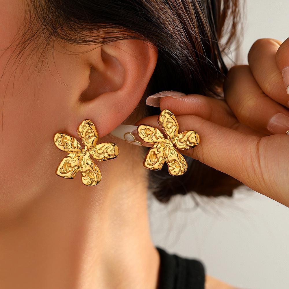 Exquisite Gold Geometric Flower Stud Earrings with Durable Vacuum Plating
