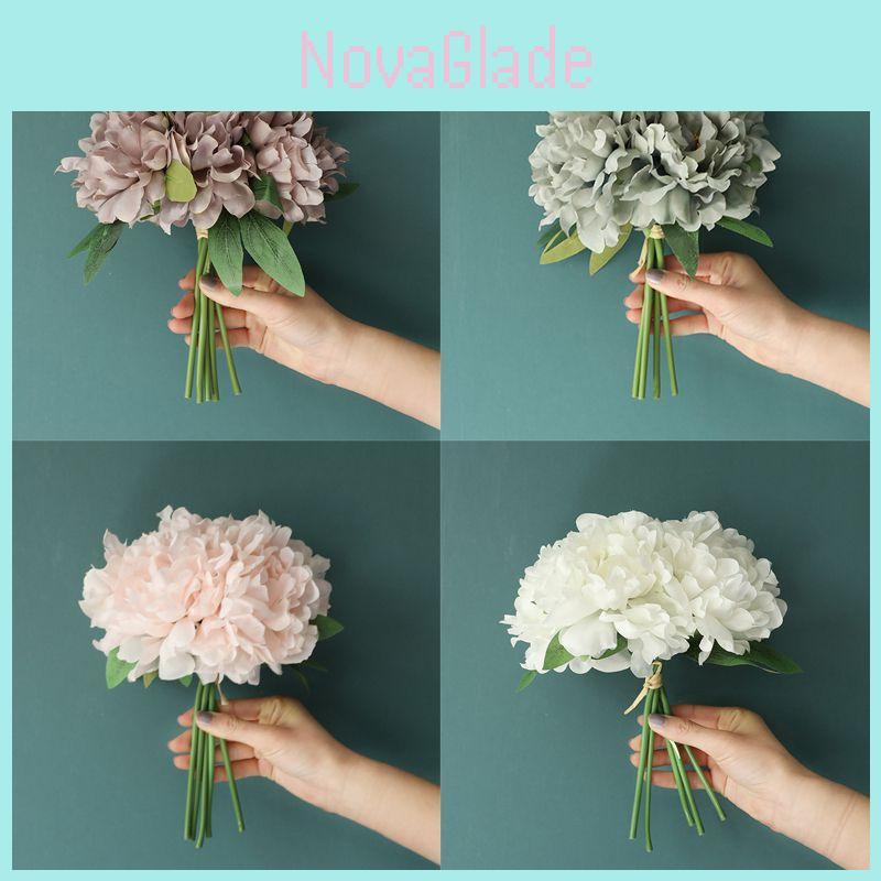 5 Heads Artificial Peony Silk Fake Flowers Hydrangea Bouquet For Elegant Wedding Party Decor**