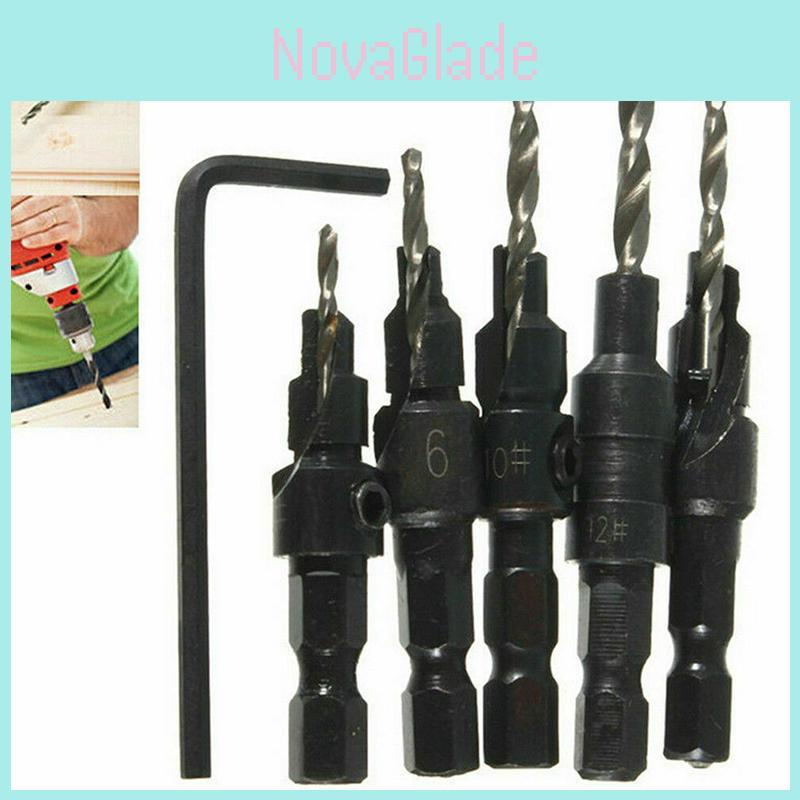 Premium 5x Adjustable Woodworking Countersink Drill Bit Set For Precise Pilot Hole Drilling