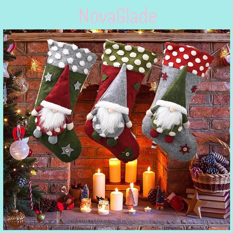 Large Christmas Stocking Gnome Santa Claus Candy Gift Bag For Festive Holiday Decor