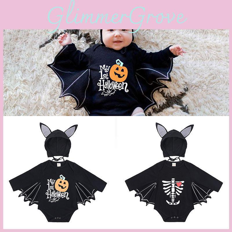 Cute Toddler Baby Boys Girls Halloween Bat Costume Romper And Hat Outfit For Parties