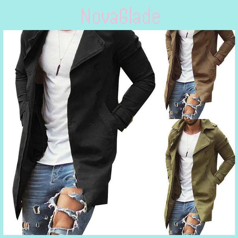 Men Lapel Trench Coat Outwear Overcoat Elegant Long Sleeve Winter Casual Warm Jacket