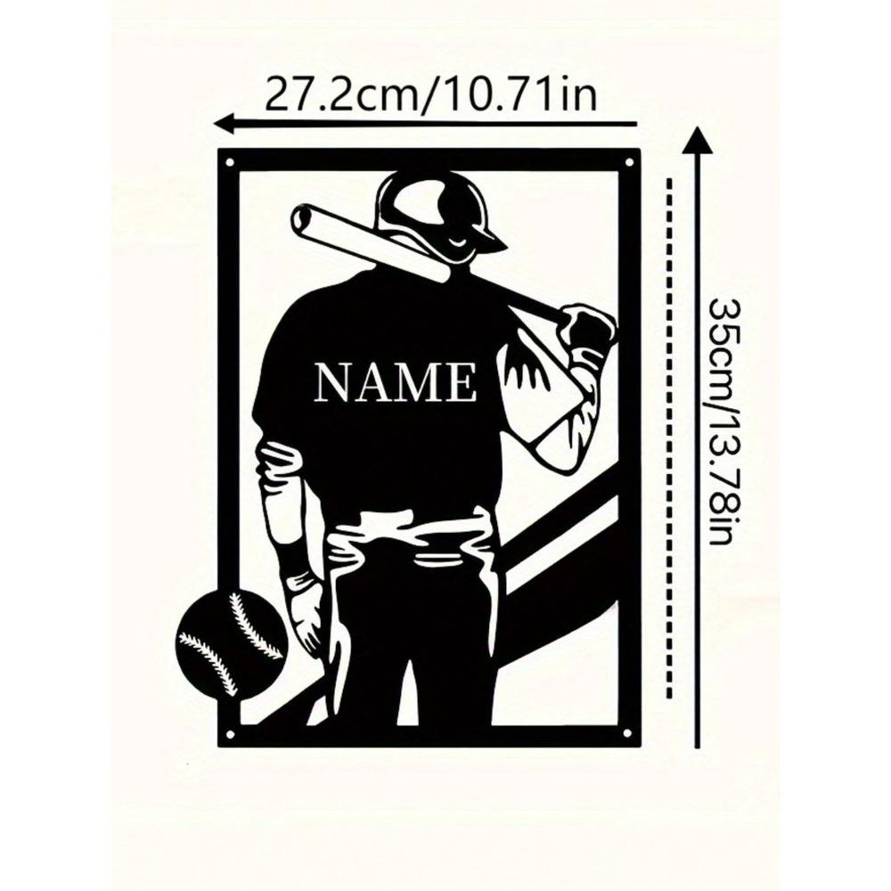 Custom Metal Baseball Player Wall Art Sculpture Personalized Number Name Sign Iron Sport Silhouette Home Decor