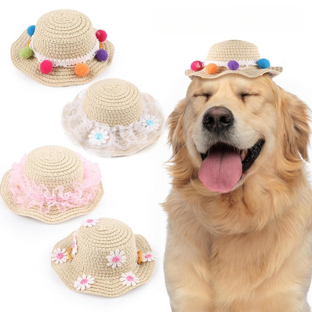 New Pet Straw Hat Cute Pet Photo Decoration Lace Hat Cat Headpiece Small Daisy Straw Hat