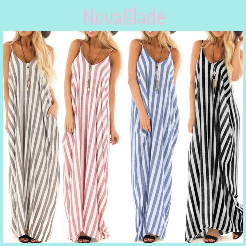 Comfortable And Oversized Women Summer Striped Long Maxi Dress For Casual Beach Days