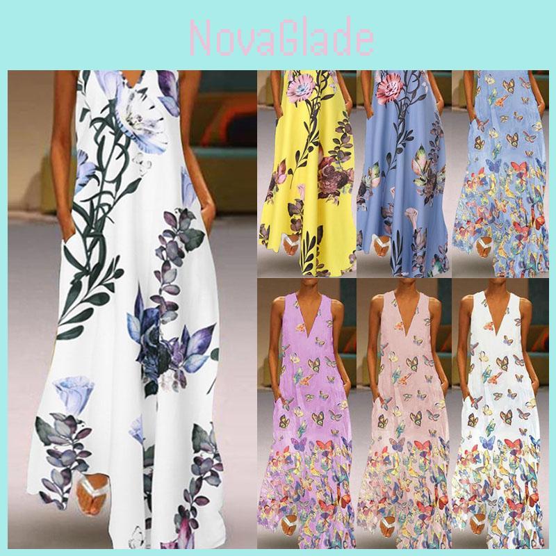 Elegant Women Sleeveless Bohemia Long Maxi Dress For Summer Beach Parties In Plus Sizes