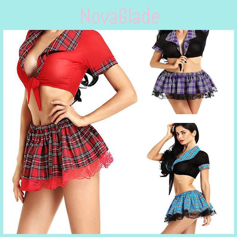 Captivating Sexy Womens School Girl Outfit With Plaid Skirt And Flirty Lingerie