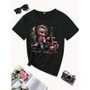 Print with Heart Details Stretch Round Neck Casual & Festive Wear Women's Black Motorcycle Graphic T-Shirt