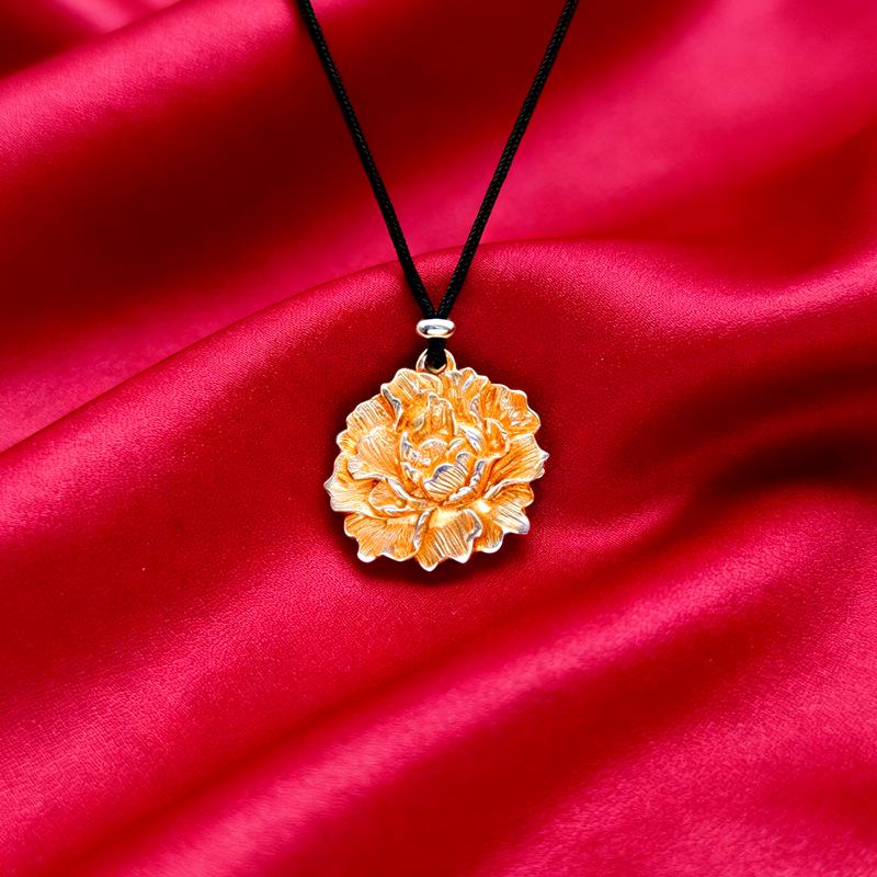 Antique Sand Gold Chinese Peony Pendant Necklace: Silver-Plated National Style Sweater Chain for Women, Symbolizing Wealth and Prosperity
