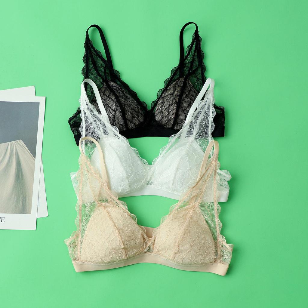 Triangle Cup Lace Wireless Bra - 100% Mulberry Silk, Sexy & Lightweight for Summer