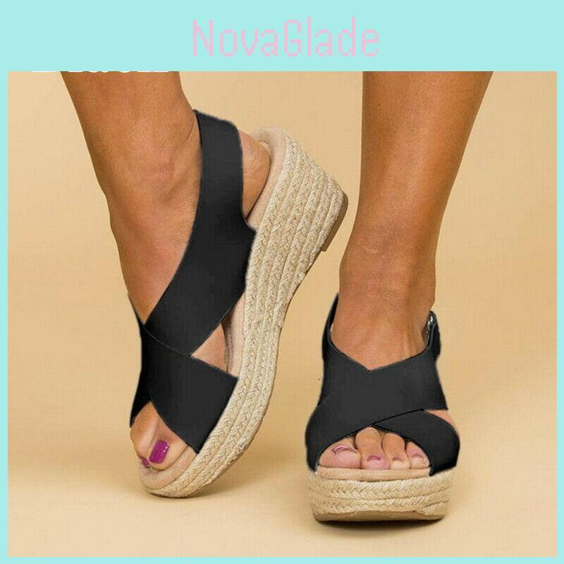 Women Summer Sandals Platforms Wedges Flat Espadrille Open Toe Beach Shoes Size