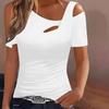Short Sleeve Hollow Out White Blouse Women Elegant Loose T-Shirt Fashion Casual Slim Fit Tops Off Shoulder Woman T-Shirt Holiday Weekend Top