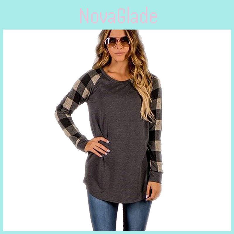 Womens Blouse Striped Plaid Long Sleeve Ladies Top T Shirt Loose Casual Tops