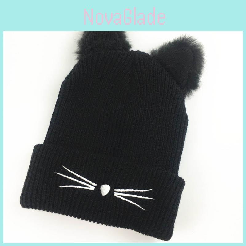 Cozy Cat Ears Women Hat Knitted Acrylic Warm Winter Beanie Caps For Fashionable Comfort
